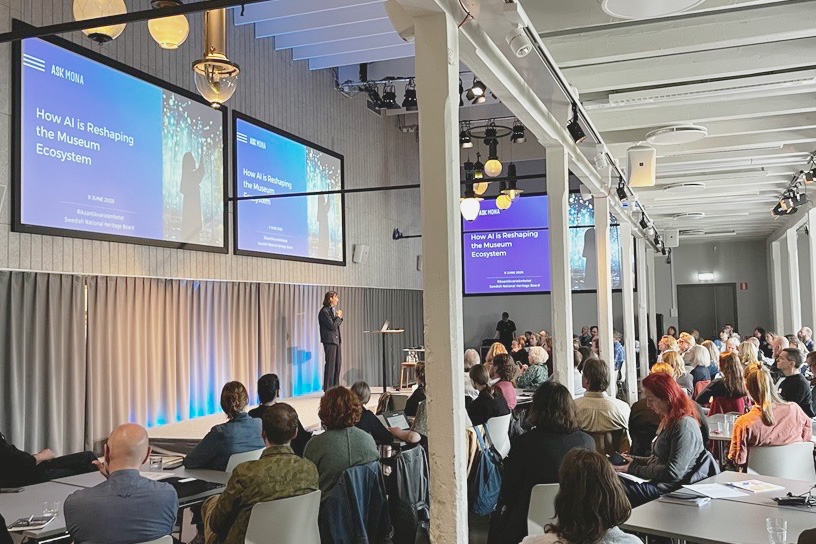 Fortbildningsdagen inleddes med två internationella gästföreläsare. Hannah Price och Tim Powell från Storbritannien diskuterade hur AI och virtuella världar kan skapa nya möjligheter för historieberättande. Marion Carré från Frankrike visade sedan hur AI omformar museernas ekosystem.